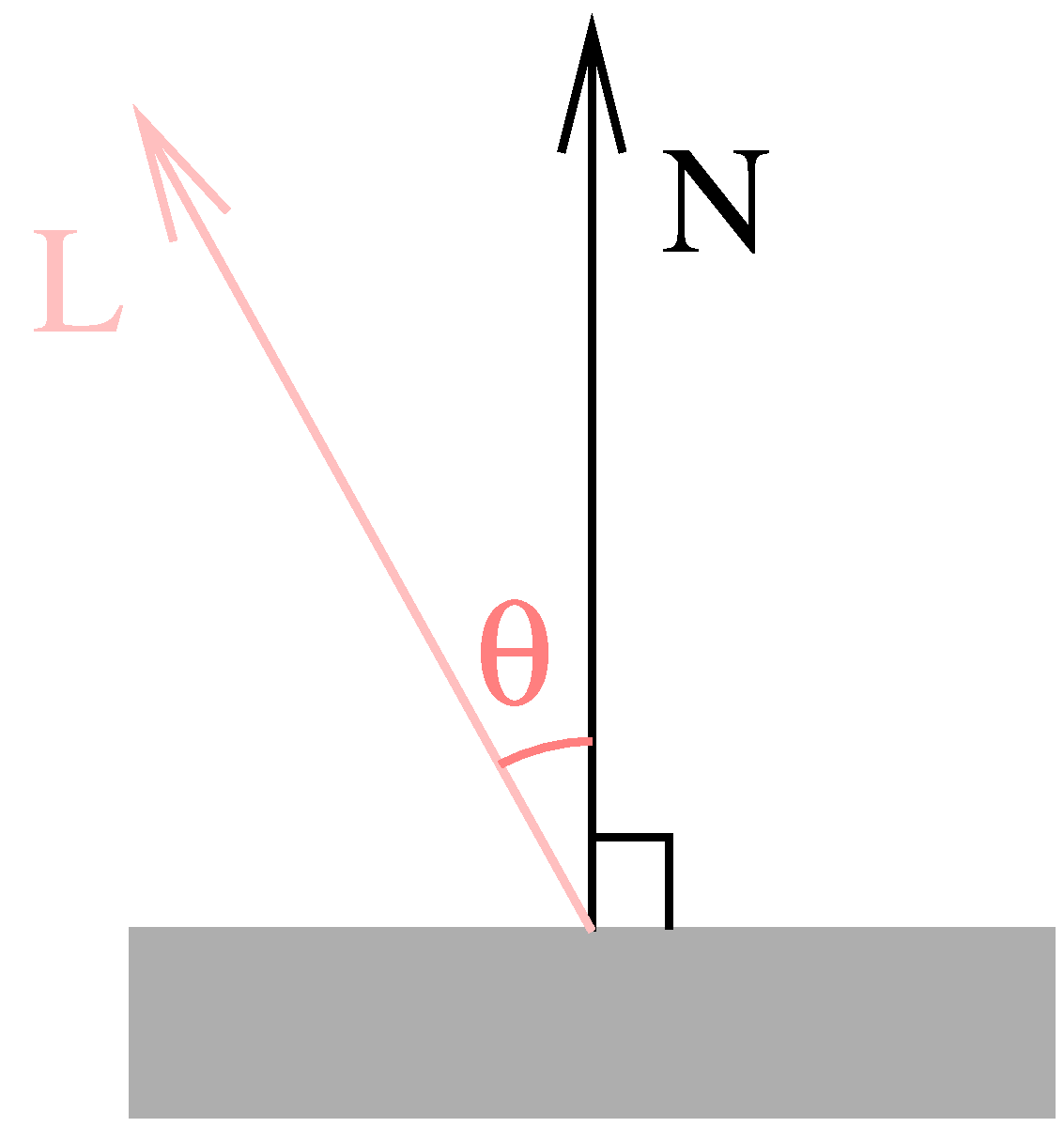 - on a \(L \cdot N = ||L|| \cdot ||N|| \cdot \cos(\theta)\) ,