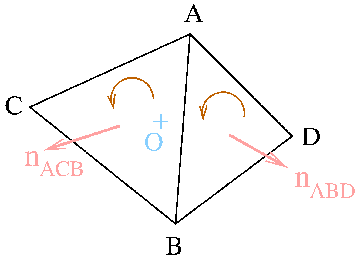 Le calcul des normales est effectué avec le produit vectoriel \(\wedge\) :
