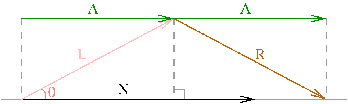 Soit \(A\) le vecteur obtenu en projetant \(L\) sur \(N\). On a \(||A|| = ||L|| \cos \theta\), or \(A\) est colinéaire à \(N\), donc