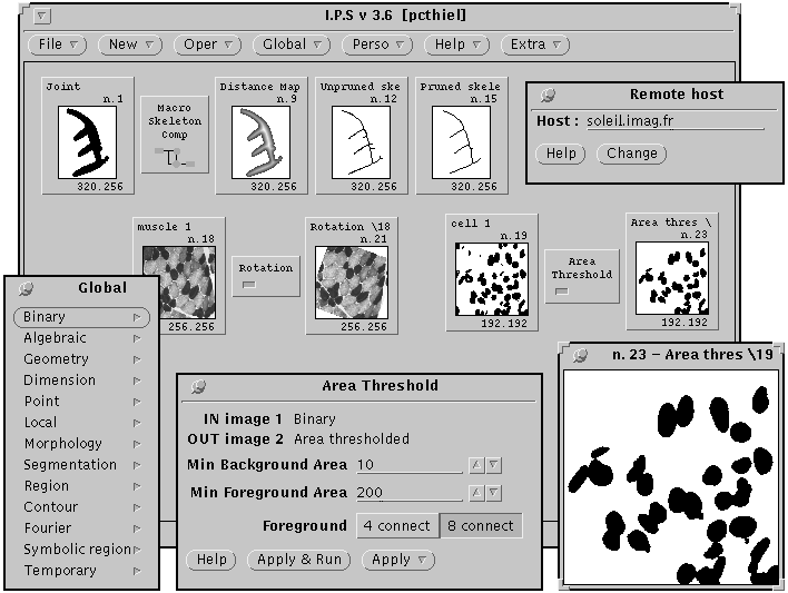 Le logiciel IPS est dédié à la manipulation des images. IPS est doté d'une interface très conviviale, où les données (images, graphes, fichiers, etc) et les opérateurs (fonctions internes, programmes externes, macros-commandes) sont représentés sous forme d'icones.