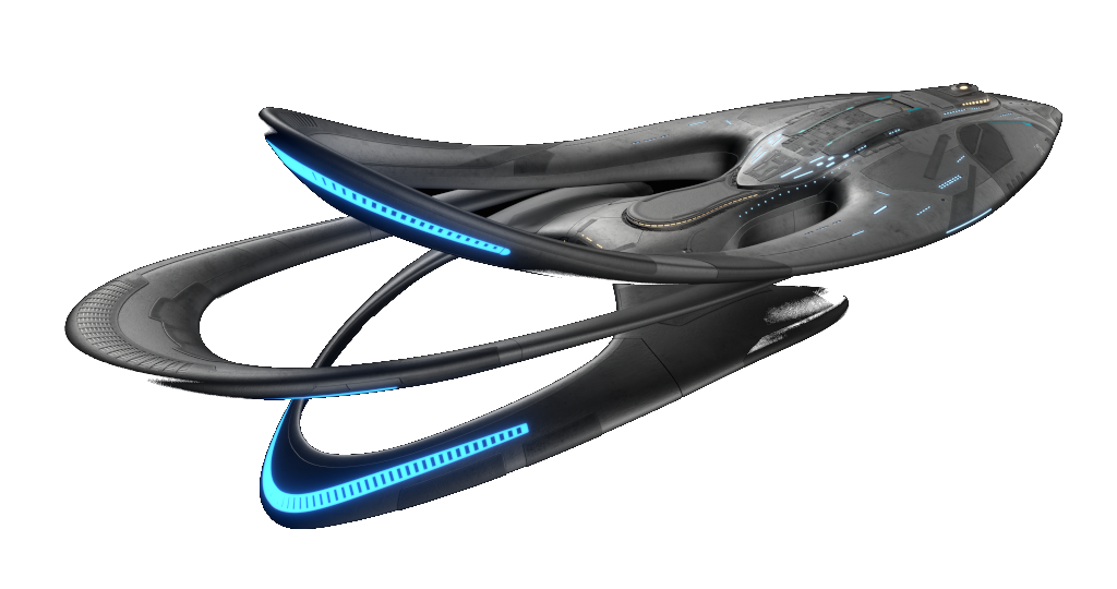 Le vaisseau est équipé d’un moteur à impulsion électromagnétique MIE3 situé à l’arrière, qui lui permet de se déplacer rapidement à l’intérieur des systèmes solaires. Il possède également 20 petits moteurs auxiliaires (5 MA4, 10 MA8 et 5 MA22) servant aux arrimages aux stations spatiales de la flotte (déplacements de précision). Enfin, il possède un système hyperdrive SH9 (les 3 anses bleues à l’arrière du bâtiment) lui permettant de passer en vitesse luminique pour accéder à des galaxies lointaines.
