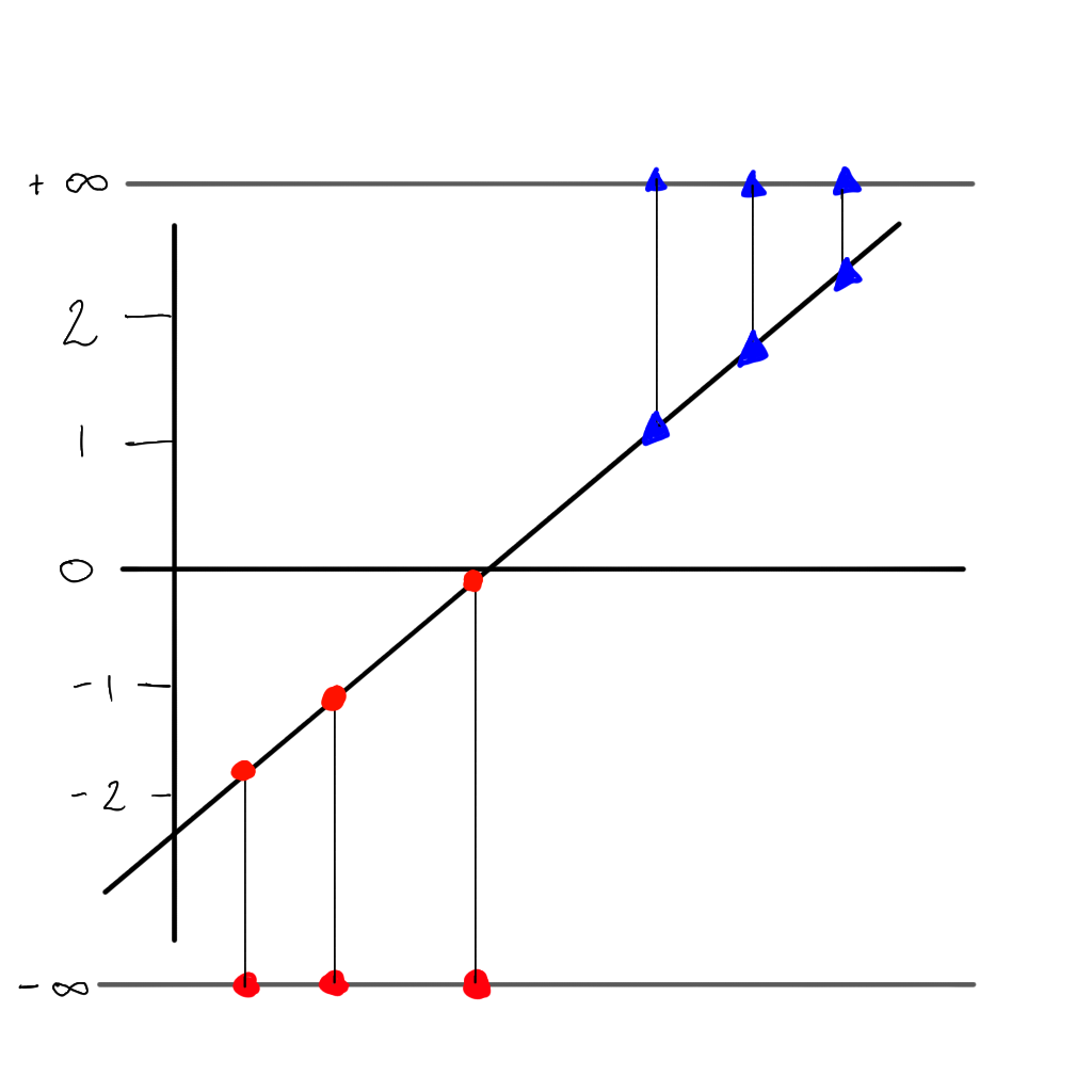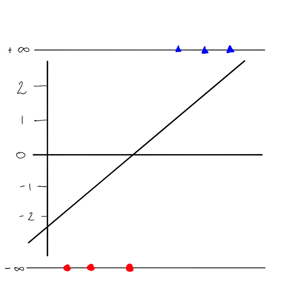 But there is a problem…we can no longer use the sum of residuals as the value would always be \(\infty\), but instead we can use the maximum likelihood. First we project each sample to its ‘odds’ (i.e. the value of \(y\) on the linear line).